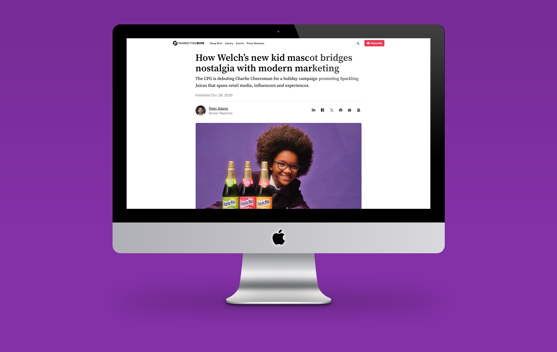 Enter our cheerful spokeskid, Charlie Cheersman, who reminds families that every day holds something worth breaking out the fancy juice for. From capturing that perfect family photo to surviving the holidays, we positioned Welch’s Sparkling as the perfect beverage for all of life's moments - big and small.